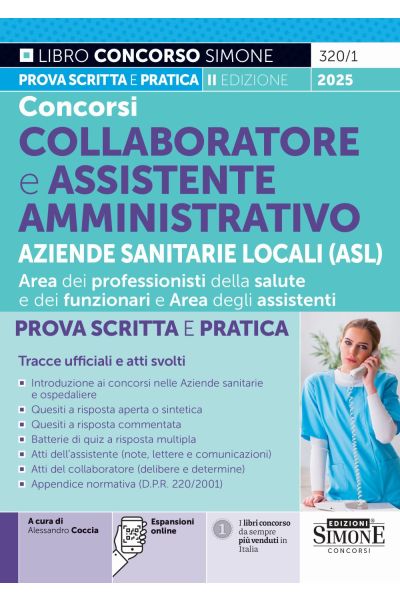 Tracce ufficiali e atti svolti – Introduzione ai concorsi nelle Aziende sanitarie e ospedaliere – Quesiti a risposta aperta o sintetica – Quesiti a risposta commentata Batterie di quiz a risposta multipla – Atti dell’assistente (note, lettere e comunicazioni) – Atti del collaboratore (delibere e determine) Appendice normativa (D.P.R. 220/2001)