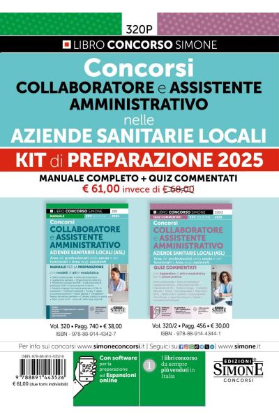 Il Kit dei libri di preparazione per i concorsi come Collaboratore e Assistente Amministrativo nelle Aziende Sanitarie Locali (ASL) comprende: