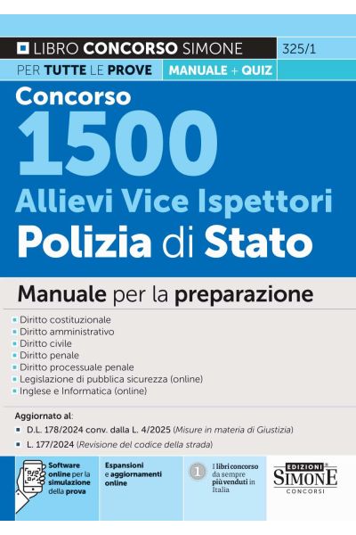 Il manuale Concorso 1500 Allievi Vice Ispettori Polizia di Stato tratta tutte le materie oggetto delle prove d’esame (scritta e orale).