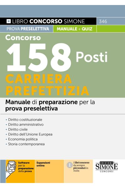 Il manuale Concorso 158 Posti Carriera Prefettizia è indirizzato alla preparazione della prova preselettiva prevista dalla procedura concorsuale, che consiste nella risoluzione di quiz a risposta multipla.