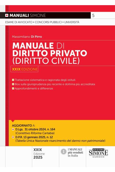 Tutti gli argomenti trattati nel presente Manuale di Diritto Privato (Diritto Civile) sono aggiornati alle più recenti novità normative e giurisprudenziali.