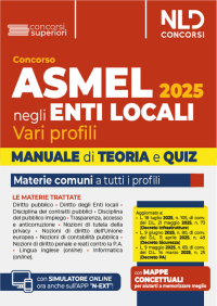 Il Manuale Concorso Asmel 2025. Teoria e Quiz, Nld Concorsi, è stato ideato e realizzato per la preparazione alla prova scritta della selezione pubblica dell'ASMEL (Associazione per la Sussidiarietà e la Modernizzazione degli Enti Locali), diretta alla formazione e all'aggiornamento degli elenchi di Scopri di più