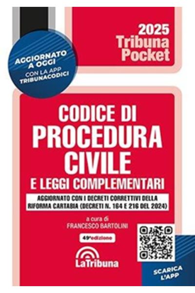 Quest’Opera fornisce ad avvocati, magistrati e studenti universitari, in un formato pratico e maneggevole, che ne favorisce la portabilità e la consultazione, il testo aggiornato del Codice di procedura civile e delle principali leggi complementari. La selezione delle leggi complementari comprende materie fra le quali segnaliamo: Locazioni, Matrimonio; Mediazione; Negoziazione assistita; Notificazioni; Responsabilità sanitaria; Semplificazione dei riti civili; Sezioni specializzate in materia di immigrazioni; Tribunale per i minorenni; Tutela dei consumatori e class action. Aggiornato con il correttivo alla Riforma Cartabia del processo civile.