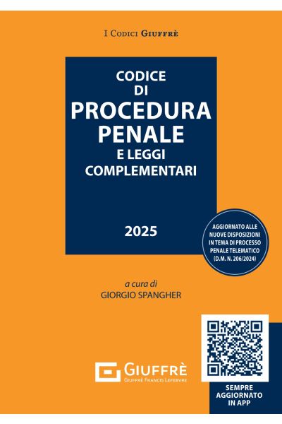 Legge di bilancio 2025 (L. 30 dicembre 2024, n. 207); Nuove disposizioni in tema di processo penale telematico (D.m. 27 dicembre 2024, n. 206); Decreto “giustizia” (D.l. 29 novembre 2024, n. 178); Decreto “flussi migratori” (D.l. 11 ottobre 2024, n. 145, conv. in l. 9 dicembre 2024, n. 187); Disposizioni in tema di tribunale per i minorenni (D.l. 4 luglio 2024, n. 92, conv. in l. 8 agosto 2024, n. 112). Le disposizioni del Codice di procedura penale e delle leggi complementari, nel cui elenco si annoverano i recenti stralci rilevanti per ciascuna voce, sono annotate con i testi previgenti delle norme di ultima emanazione e con specifici richiami alla normativa correlata.