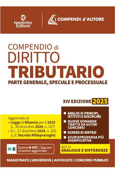 L’Edizione 2025 del Compendio di diritto tributario, NelDiritto Editore, è stata stravolta e riscritta in considerazione delle numerose novità normative intervenute, tra cui si segnalano: