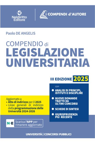 Il Compendio di Legislazione Universitaria, NelDiritto 2025 fornisce un’accurata e organica ricostruzione della normativa relativa al sistema universitario. L'Opera si articola in quattro Parti:
