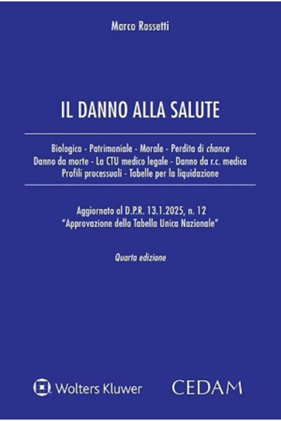 IL DANNO ALLA SALUTE offre un'esposizione completa sui danni alla persona. Ne dà la nozione, ne cerca il fondamento, ne definisce l’accertamento, ne spiega la liquidazione. Il testo è aggiornato al D.P.R. 13.1.2025, n. 12 “Approvazione della Tabella Unica Nazionale”. Il volume esamina tutti i tipi di danno: il danno biologico permanente e temporaneo; il danno patrimoniale da incapacità di guadagno; il danno patrimoniale per spese mediche; il danno (patrimoniale e non patrimoniale) derivante dall'uccisione d’un prossimo congiunto; il danno da perdita di chances; il danno c.d. terminale o “da lucida agonia”; il danno causato da colpa medica. Per ciascuno di questi pregiudizi il volume offre al lettore le tre indicazioni fondamentali per il giurista teorico e per quello pratico: cos’è, come si accerta e come si liquida. Tutti i temi trattati sono esaminati ed esposti in modo chiaro e completo: tra questi, i problemi della causalità giuridica e medico-legale, la compensatio lucri cum damno; la surrogazione dell’assicuratore sociale; i criteri di applicazione delle c.d. “tabelle” create dalla giurisprudenza di merito, i poteri ed i limiti dell’operato del c.t.u. Il testo è completato da una ampia esposizione di tutte le questioni connesse all'obbligazione risarcitoria (il trattamento fiscale, la mora, la prescrizione, la solidarietà) e delle questioni processuali: come allegare e come contestare in giudizio il credito risarcitorio, con utili indicazioni sulla migliore tecnica di redazione degli atti. Tra le novità di questa nuova edizione si segnalano: l’ampia esposizione dei contenuti, delle conseguenze e dei problemi posti dalla nuova Tabella Unica Nazionale approvata con d.p.r. 13.1.2025 n. 12; l’impatto sul contenzioso in tema di danno alla persona della riforma di cui al d. lgs. 149/22 (c.d. “riforma Cartabia”), ivi comprese le nuove regole in tema di c.t.u. (d.m. 109/23) e le nuove regole in tema di redazione degli atti (d.m. 110/23); una ampliata trattazione dei problemi del danno alla persona causato da responsabilità medica, estesa ai criteri di accertamento della colpa, al problema della r.c. medica per infezioni da Covid-19 e del problema della possibilità di considerare “infortunio” l’infezione da Covid-19, ai fini assicurativi (Cass. 3016/25). Il testo dà conto altresì di tutte le novità giurisprudenziali intervenute dopo l’ultima edizione, tra queste, si segnalano per la loro importanza: i princìpi dettati dalla Corte di cassazione in tema di cumulo tra risarcimento e indennizzo da polizza infortuni (Cass. 3429/25); poteri del c.t.u. (Cass. SU 3086/22); di responsabilità dell’ospedale per infezioni nosocomiali (Cass. 6386/23), di liquidazione del danno in forma di rendita (Cass. 31574/22), di danno da emotrasfusione (Cass. 19129/23). Per la completezza degli argomenti, per l’organicità dell’esposizione, per la chiarezza della sintassi, il volume costituisce un ausilio prezioso non solo per l’avvocato od il magistrato, ma anche per il medico legale od il liquidatore. A chi si rivolge avvocato magistrato medico legale liquidatore