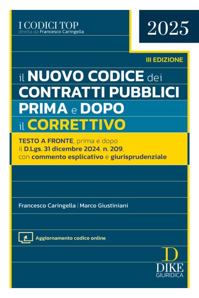 Il Nuovo Codice dei Contratti Pubblici Prima e Dopo il Correttivo 2025: costituisce un indispensabile strumento per una immediata comprensione del nuovo Codice dei contratti pubblici (D.lgs. 31 marzo 2023, n. 36) e delle novità introdotte dal correttivo 2024 riporta in tutte le norme, in modo comparato, la disciplina in vigore e quella previgente al correttivo contiene un utilissimo commento che evidenzia le novità, teoriche e pratiche, derivanti dalla riforma del DICEMBRE 2024