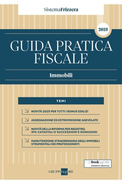 La Guida offre una pratica ed agevole consultazione della disciplina fiscale di fabbricati e terreni, sia privati sia commerciali, analizzata per singola imposta e considerando le diverse fasi di gestione degli immobili (anche esteri), vale a dire costruzione, trasferimento, locazione, anche finanziaria, manutenzione e ristrutturazione. Inoltre, sono illustrate in modo analitico le agevolazioni fiscali nel settore edilizio. L’edizione 2025 è aggiornata, oltre che con le novità di prassi e giurisprudenza, con le modifiche apportate dalla Legge di Bilancio 2025, dal decreto «Milleproroghe», dal decreto «Salva casa» e dai decreti attuativi della Riforma fiscale, in particolare il decreto «Irpef-Ires» e il decreto per la «Razionalizzazione delle imposte di registro e di bollo, dell’imposta sulle successioni e donazioni, e degli altri tributi indiretti diversi dall’Iva», comprendenti le imposte ipotecaria e catastale e le tasse per i servizi ipotecari e catastali.