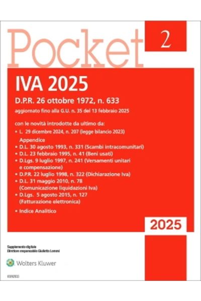 Il Pocket il fisco IVA riporta il testo del D.P.R. 26 ottobre 1972, n. 633, aggiornato con i provvedimenti pubblicati nella Gazzetta Ufficiale fino al 10 febbraio 2025.