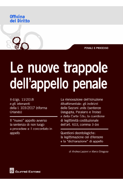 Il fascicolo affronta, fra l'altro, i seguenti argomenti: il d.lgs. 11/2018 e gli interventi della l. 103/2017 (riforma Orlando); il "nuovo" appello avverso la sentenza di non luogo a procedere e il concordato in appello; la rinnovazione dell'istruzione dibattimentale: gli indirizzi delle Sezioni unite (sentenze Dasgupta, Patalano e Troise) e della Corte Edu e la questione costituzionale dell'art. 603, comma 3-bis; le questioni deontologichje: la legittimazione del difensore e la "dichiarazione" di appello.