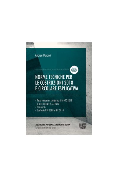 Con la pubblicazione in Gazzetta Ufficiale della circolare esplicativa n. 7 del 21 gennaio 2019 si dà piena applicazione e operatività alle Norme Tecniche per le Costruzioni 2018 (d.m. 17 gennaio 2018). Questo manuale offre un quadro completo della normativa sulle costruzioni in Italia, fornendo sia il testo integrale delle NTC 2018 e della circolare esplicativa, integrati e coordinati per un immediato confronto, che il commento puntuale di entrambe (capitolo per capitolo e paragrafo per paragrafo), al fine di dare al lettore uno strumento di fondamentale importanza per comprendere cosa è cambiato, e in che misura, e cosa è rimasto invariato rispetto alla precedente normativa.