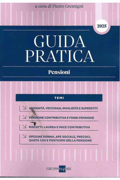Guida pratica pensioni consente agli operatori del settore, ai consulenti e alle aziende di avere un quadro complessivo del sistema previdenziale italiano. La struttura del libro si basa sulla descrizione analitica delle prestazioni previste per legge dai diversi sistemi previdenziali obbligatori e da quelli privati delle Casse di previdenza dei liberi professionisti. Tra i diversi strumenti di pensionamento, un posto specifico è poi occupato dall’analisi dei sistemi di cumulo, totalizzazione, riscatti e di welfare privato per l’accompagnamento alla pensione per chi non abbia ancora maturato i requisiti ordinari, quali l’esodo incentivato e l’isopensione. Anche la legge individua alcune categorie a cui fornisce la possibilità di uno scivolo pensionistico tramite strumenti come l’Ape sociale, l’opzione donna e quota 103. La Guida, nell’ambito di un sistema legislativo e interpretativo stratificato e complesso, affronta tutte queste tematiche nel modo più semplice e chiaro, grazie al supporto di esempi pratici che rendono l’opera consultabile anche da parte dei non addetti ai lavori.